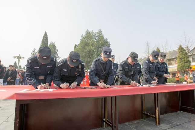 仪式结束后,志愿者们依次在宣传横幅上签字,并向过往行人发放“弘扬雷锋精神,倡树文明出行,助推文明创建”宣传单,宣传绿色出行、文明出行新风尚,劝导市民自觉将摩拜单车规范停放,做文明骑行与停放的示范者、传播者、监督者。