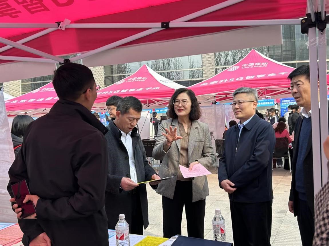 招聘会现场,校党委常委、副校长纪洪涛、学工处处长姜美颖等领导亲临现场指导。正妹