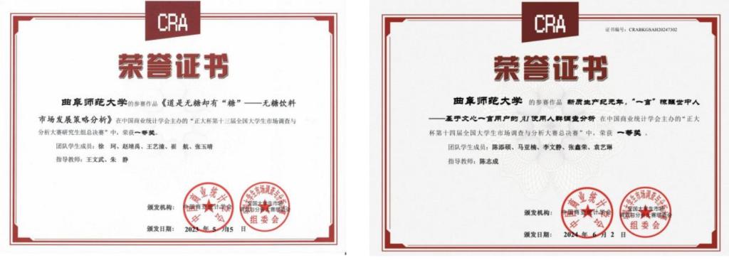 v 在“正大杯”全国大学生市场调查与分析大赛中,荣获23项国家级奖项,其中一等奖2项、二等奖2项、三等奖19项;